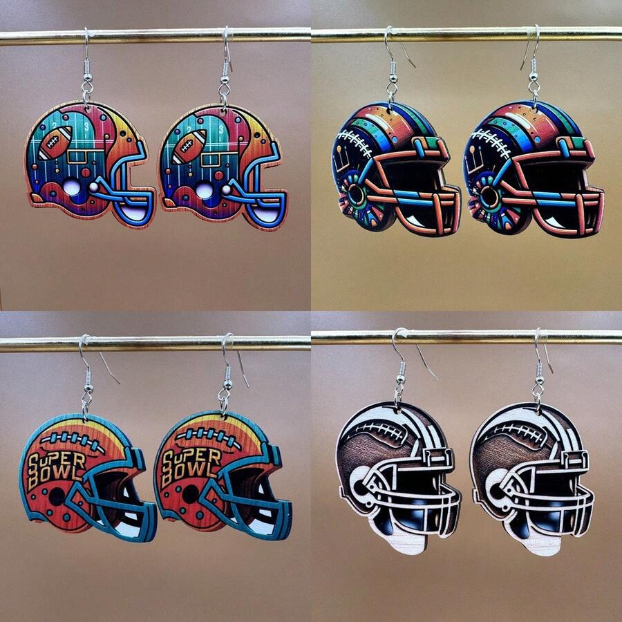 1 Par Pendientes De Madera Retro De Cascos De Fútbol De Motocicleta, Ropa Y Equipos, Joyería De Aretes Para Hombres Y Mujeres