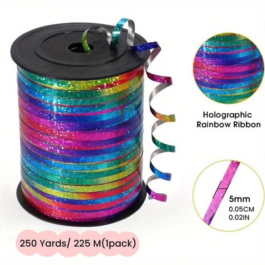 1 rollo, 228 metros de cinta rizada arcoíris para envolver regalos, atar globos, bodas, cumpleaños - Cinta brillante metálica para ramos y envoltura de flores