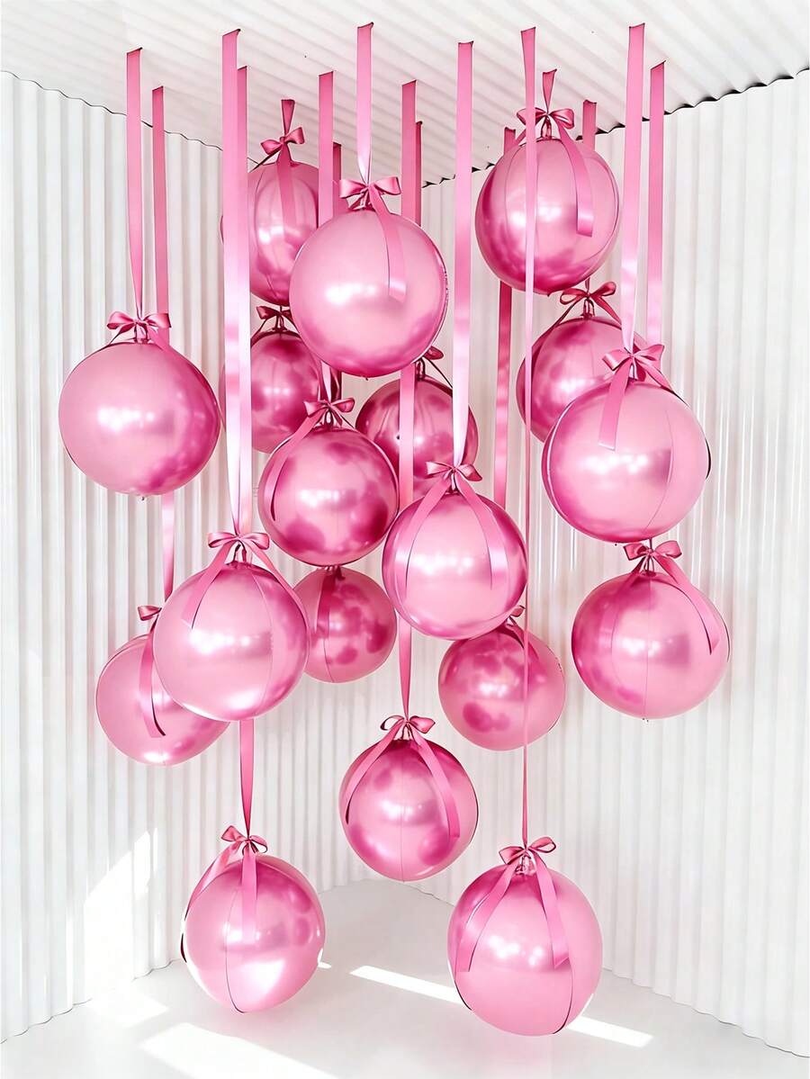 10 piezas de globos rosas de 18 pulgadas 4D con cintas de poliéster rosas y papel protector, portátiles para decoración de habitaciones, decoración de fiestas, decoración de bodas, reuniones familiares