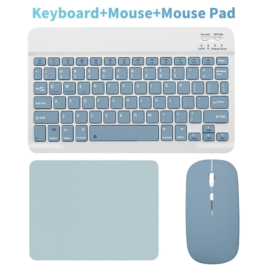 Juego portátil inalámbrico de teclado y ratón Bluetooth de 150mAh, compatible con tabletas , Apple iPad (iOS 13+), smartphones Android, sistemas Windows (Azul Brumoso)
