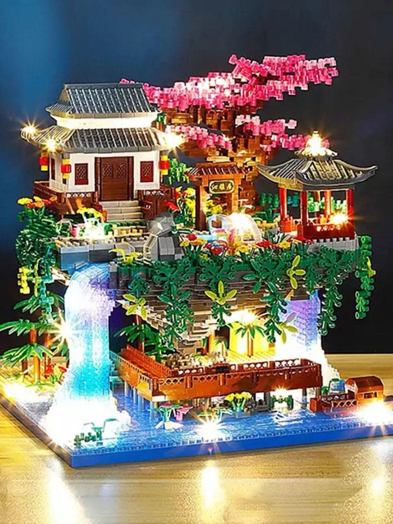 1 set ABS 3320 piezas Set de bloques de construcción micro de casa del árbol de diamante con luz y cascada para decoración de habitación de Sets de adultos