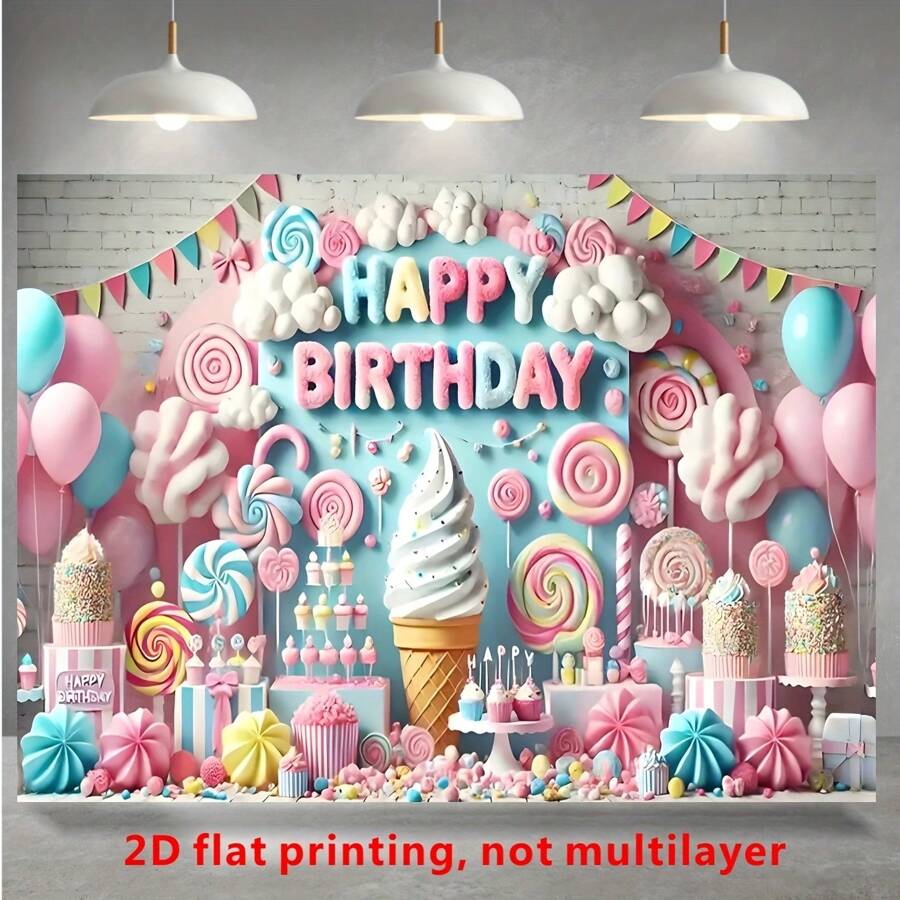 1 pieza Pancarta de cumpleaños con tema de caramelos, diseño de helado y paleta, adecuada para todas las estaciones, fiestas, eventos, sesiones de fotos, aniversarios, cumpleaños, graduaciones