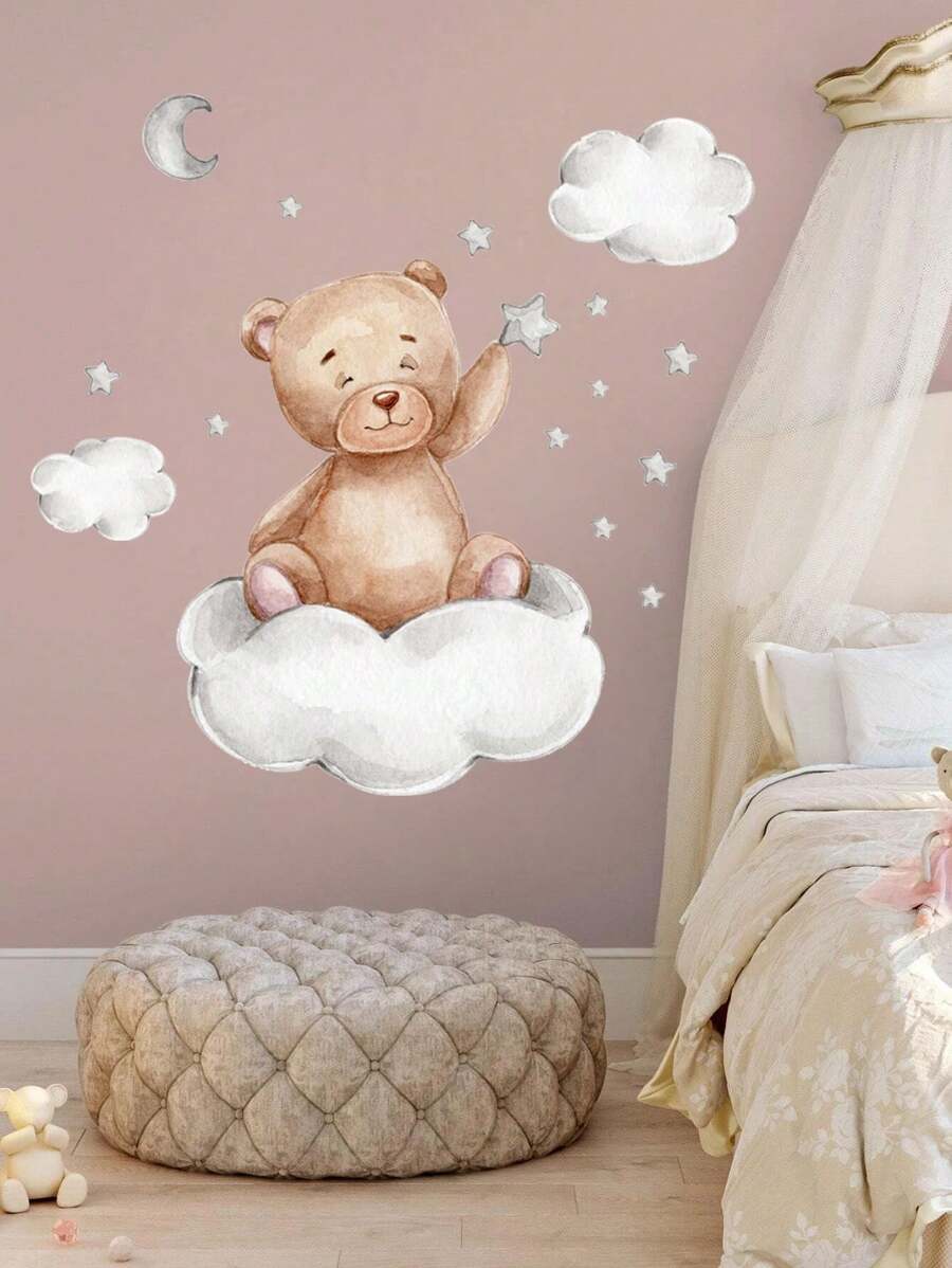 1 pieza Pegatina oso de dibujos animados & con diseño de nube