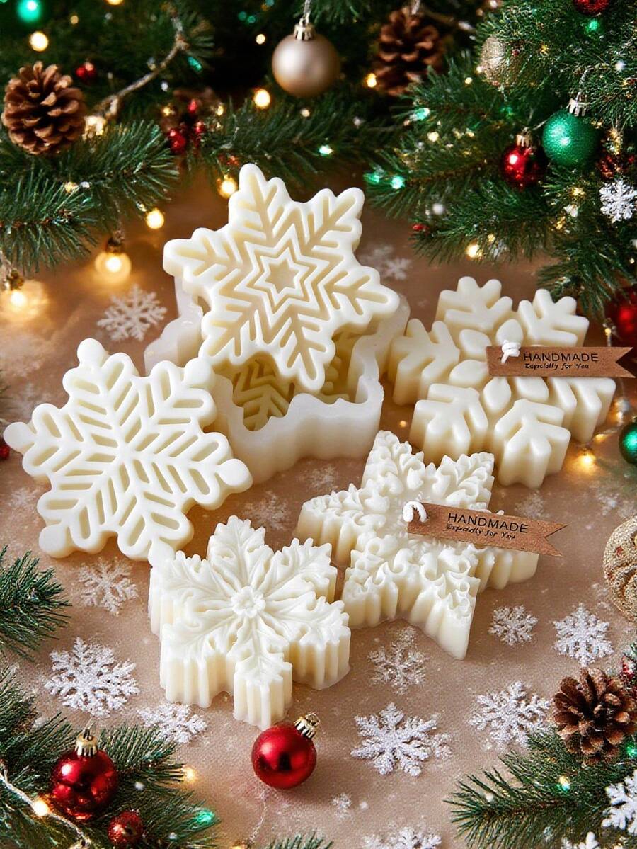 1 pieza Molde de silicona 3D en forma de copo de nieve navideño - Para velas, jabón, resina y manualidades de arcilla blanda/pegamento de goteo, herramienta decorativa de arte manual