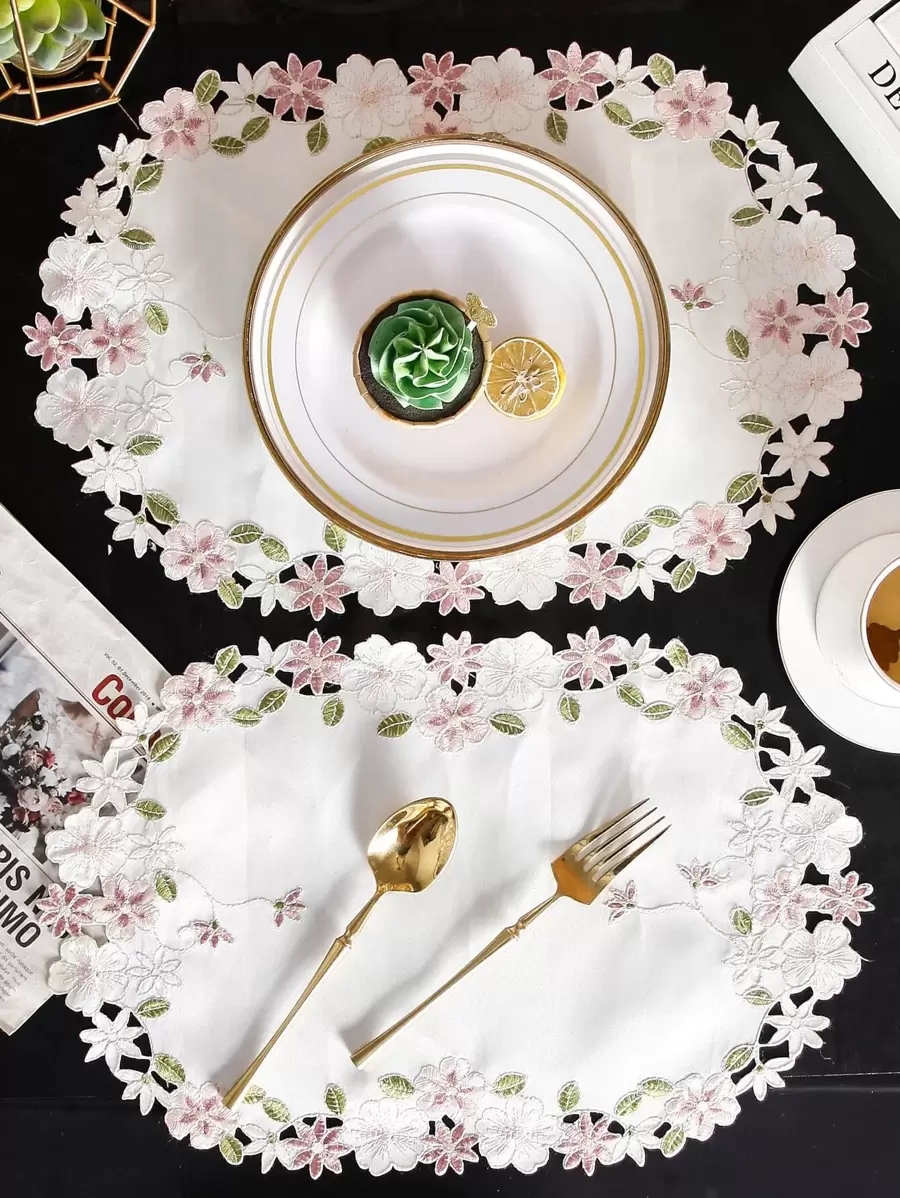1 pieza/4 piezas/6 piezas Nuevo estilo europeo Mantel bordado, Tapete de mesa de comedor, Posavasos, Tapete de vajilla de tela a prueba de polvo, a prueba de humedad, resistente a los arañazos, adecuado para bodas, fiestas, reuniones, regalos, cumpleaños