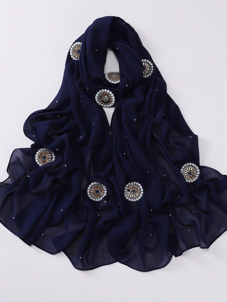 1 pieza Pañuelo Hijab de Gasa Musulmán con Decoración de Strass y Perlas de Lujo (Color de Strass seleccionado al azar)