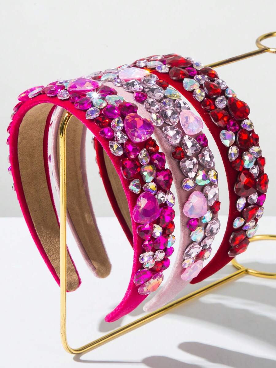1 pieza Diadema retro de terciopelo de unicolor con banda ancha, decorada con gema en forma de corazón lujosa y dulce, accesorio esencial para el Día de San Valentín, adecuado para citas festivas, diadema, aro para el cabello, regalo de accesorios para el Día de San Valentín