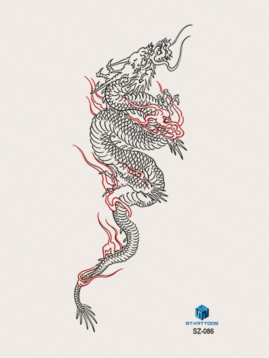 1 Pieza Tatuaje Temporal Para El Cuerpo Con Patrón De Dragón Y Flores Y Contorno Negro Y Rojo Para Brazo, Pecho, Abdomen Y Espalda