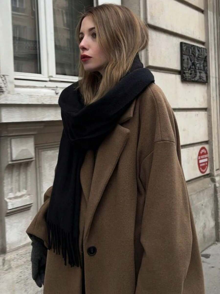 1 pieza Bufanda de mujer minimalista de unicolor de cachemir sintético, adecuada para la transición de temporada, uso diario, a prueba de viento y cálida, regalo de Año Nuevo