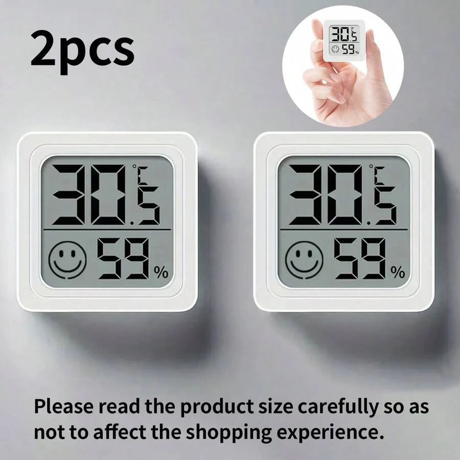 2 piezas Termómetro digital compacto mini e higrómetro, monitor de humedad de alta precisión con pantalla LCD, termómetro e higrómetro de temperatura y humedad interior y exterior con alimentación por batería para el hogar, habitación de adolescentes, jardín, coche