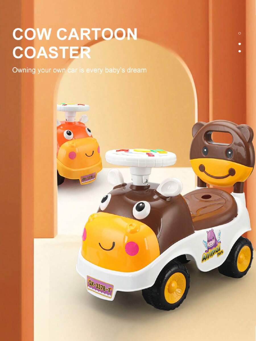 Juguete de montar de vaca de dibujos animados 3 en 1, coche balancín, coche de carreras de bebé, andador de bebé, patinete con tabla deslizante para niños pequeños