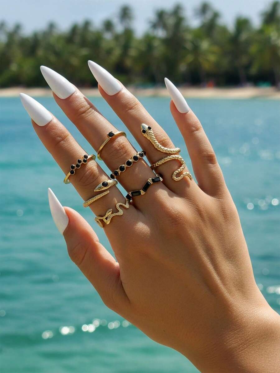 imoli 7 piezas Anillo serpiente & con diseño de diamante de imitación