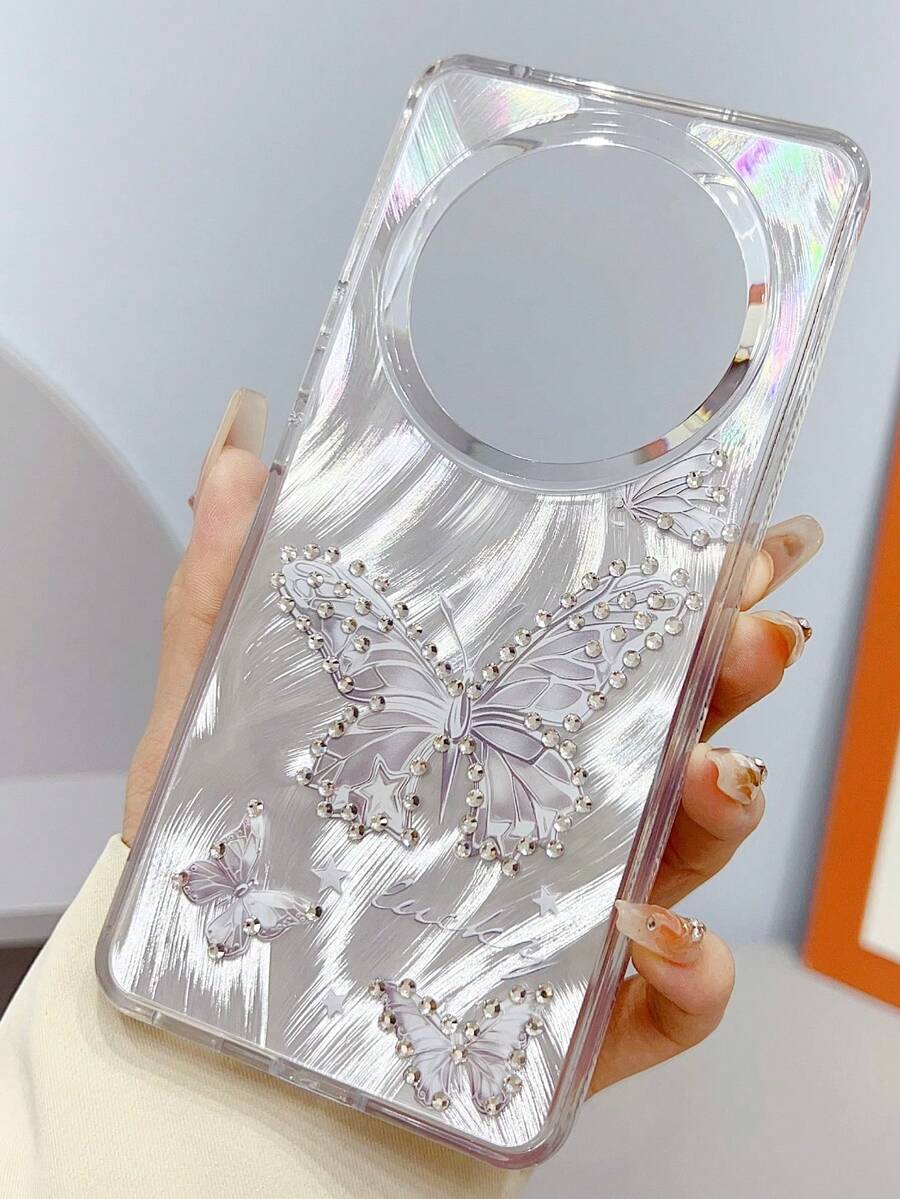 • FUNDA PARA CELURA ACRILICO TORNASOL CON MICA 9D(REGALO),BONITO DISENO - MARIPOSA GRIS - Ver 2