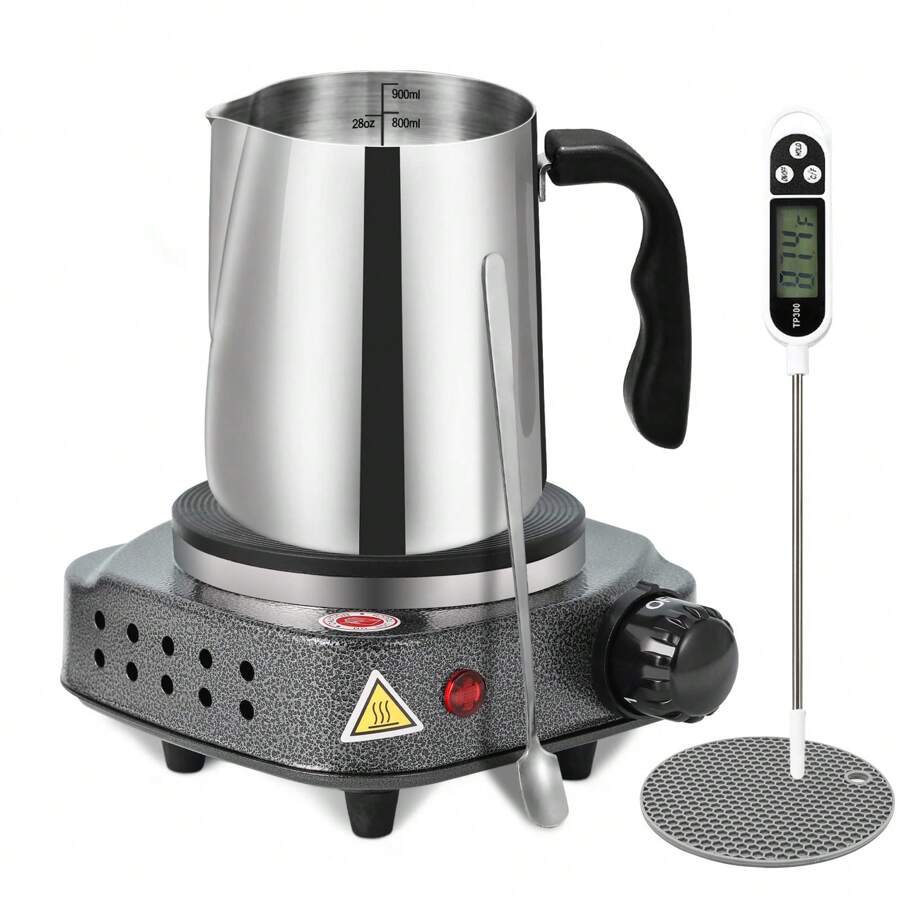 Olla Para Hacer Velas Con Placa Eléctrica Para Derretir,Kit para hacer velas con placa calefactora electrónica, kit para hacer velas navideñas, suministros para hacer velas de bricolaje con derretidor de cera, olla para verter