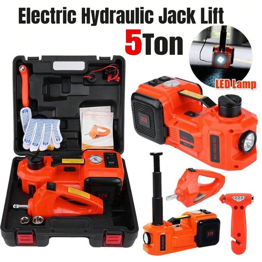 Gato hidráulico portátil con caja de almacenamiento de plástico, 5 toneladas de alta resistencia 12V DC Automotriz coche eléctrico hidráulico piso elevador de garaje y equipos de emergencia de elevación del coche Jack con lámpara LED para SUV MPV Cambie los neumáticos de reparación de garaje, 15,5 cm a 45 cm rango de elevación