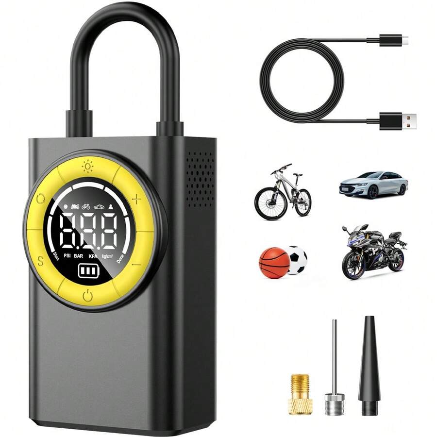 Compresor de aire inalámbrico portátil Carsun, inflador de neumáticos de coche, apagado automático, batería de alta potencia, pantalla digital 150PSI puerto USB, mini bomba de aire de emergencia compacta con iluminación LED