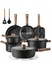 Juego de ollas de 13 piezas, juego de cocina de inducción de olla de piedra de 13 piezas, olla multifunción, olla antiadherente, juego de ollas antiadherentes multifunción de gran capacidad, juego de cocina antiadherente para estufa eléctrica doméstica, juego de utensilios de cocina, suministros de cocina, herramientas de cocina, apariencia exquisita, operación simple, superficie de cocción antiadherente resistente a los arañazos sin PFOA, adecuada para todo tipo de estufas, adecuada para el hogar, la escuela, los viajes, la tienda (azul, morado, rosa, negro)#1 Más vendidos