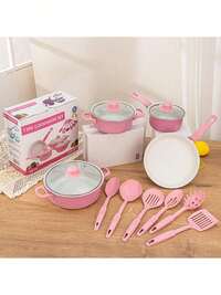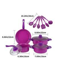 Juego de utensilios de cocina multifuncionales de 13 piezas, sartén antiadherente de cerámica saludable de agarre suave, juego de ollas de cocina de 13 piezas, juego para el hogar con tapa de vidrio templado, revestimiento antiadherente, conducción eficiente del calor, resistente y duradero, excelente sensación, variedad de ollas Los tipos satisfacen las necesidades diarias (azul, morado, rosa)#2 Más vendidos