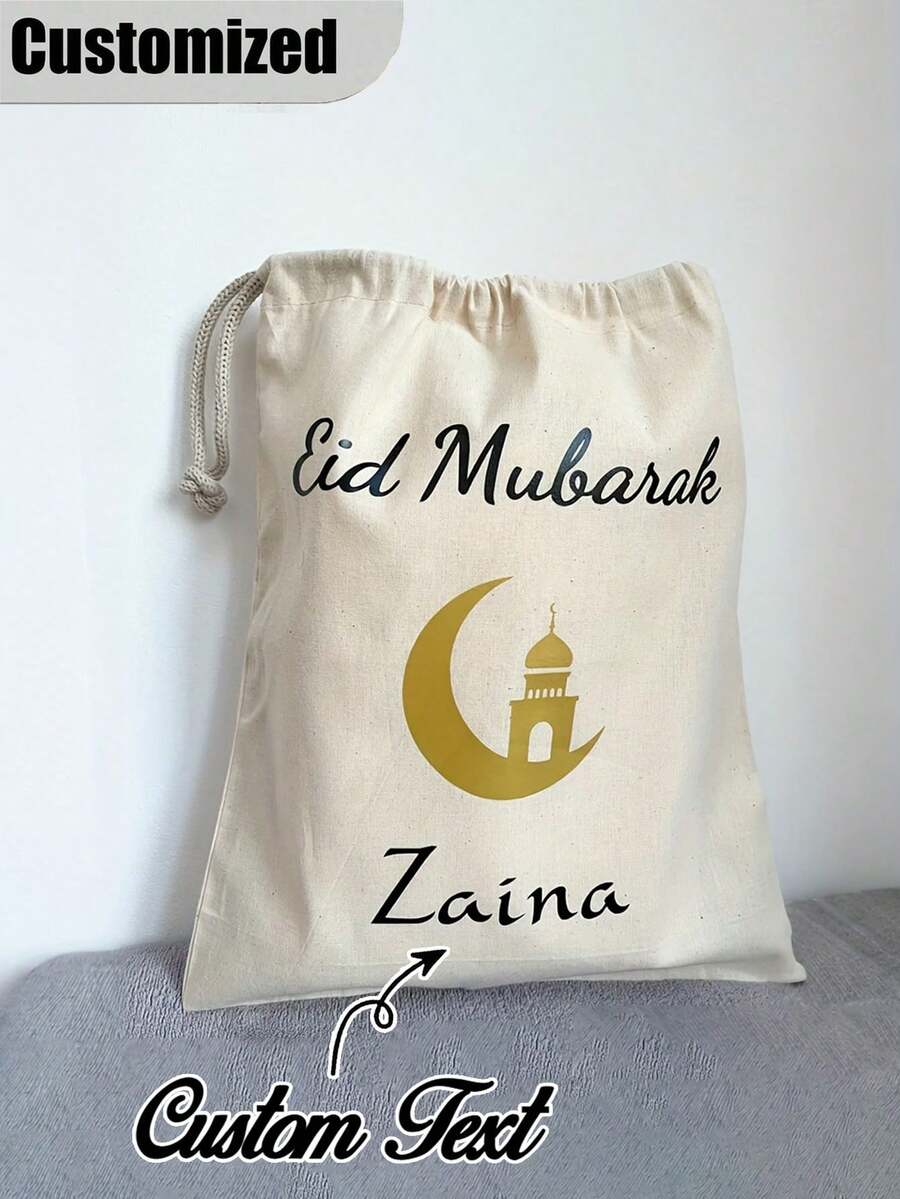 Bolsas de regalo personalizables para Ramadán, bolsas de almacenamiento con cordón personalizado, se pueden imprimir con nombres, bolsas de regalo personalizadas para Eid Al-Fitr, ligeras y plegables, elegantes y multifuncionales, bolsa de Ramadán DIY/bolsa de oración de Tarawih/regalo de Ramadán/regalo musulmán/obsequio de Ramadán/regalo islámico/bolso de Ramadán, bolsa de regalo para fiestas