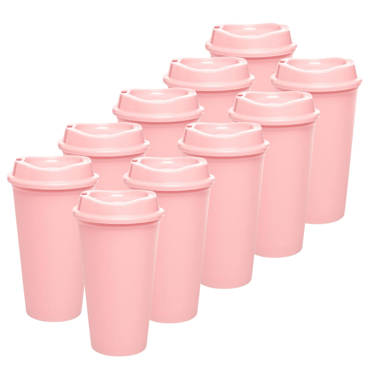 • Paquete 10 Vasos Reusables Cafeteros Tipo Star 16 Oz Bebida Caliente - Rosa Pastel - Ver 4