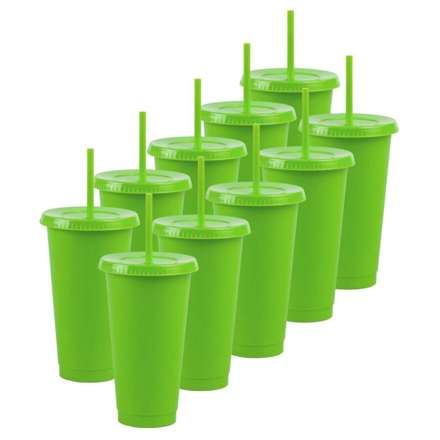 • Paquete 10 Vasos Reusables Con Popote Para Bebidas Frías 24 Oz - Verde Limon - Ver 5