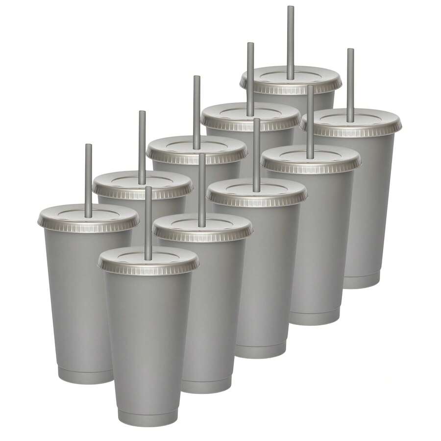 Paquete 10 Vasos Reusables Con Popote Para Bebidas Frías 24 Oz