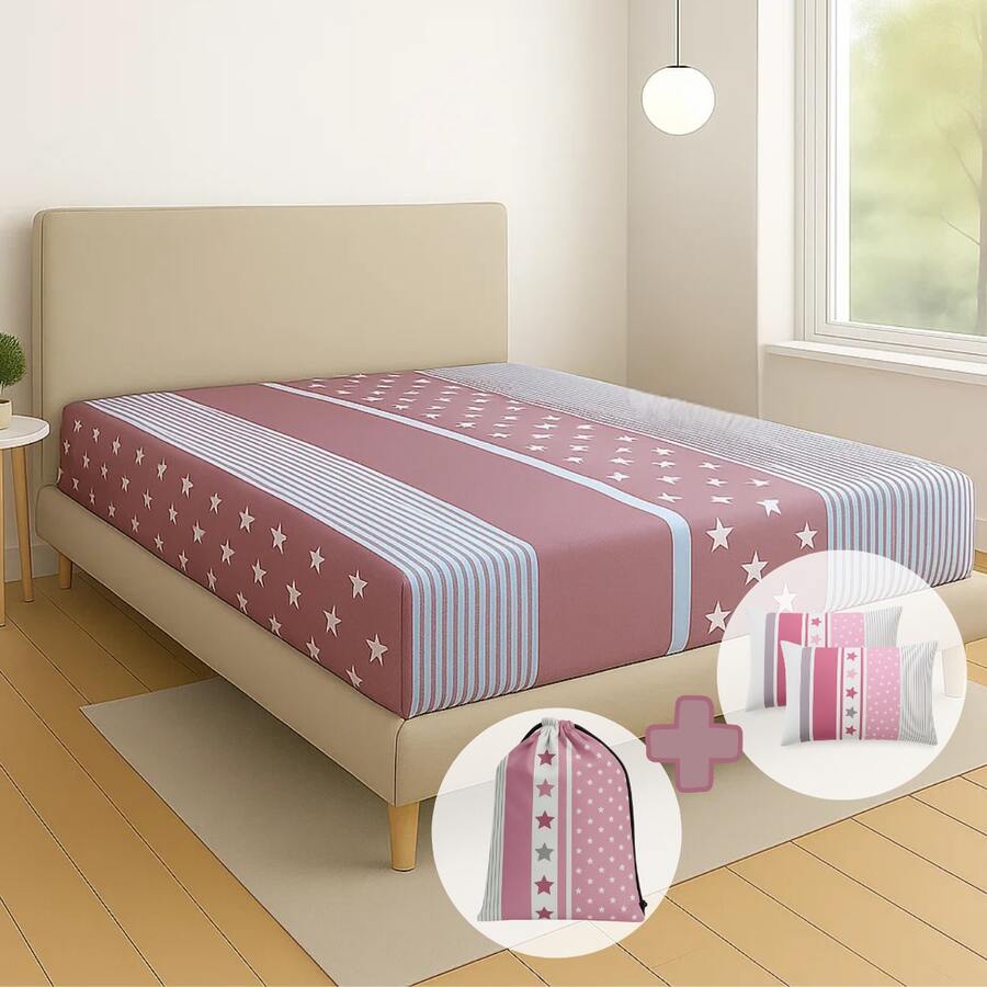 DuVlo Sábana De Cajón + 2 Fundas De Almohada Microfibra + Bolsita tacto algodón, de microfibra súper suave, diseños modernos, todas las medidas, Individual, Matrimonial, Queen y King