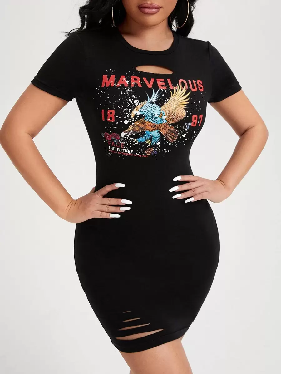 SHEIN SXY Vestido ajustado con estampado de águila y letra desgarro