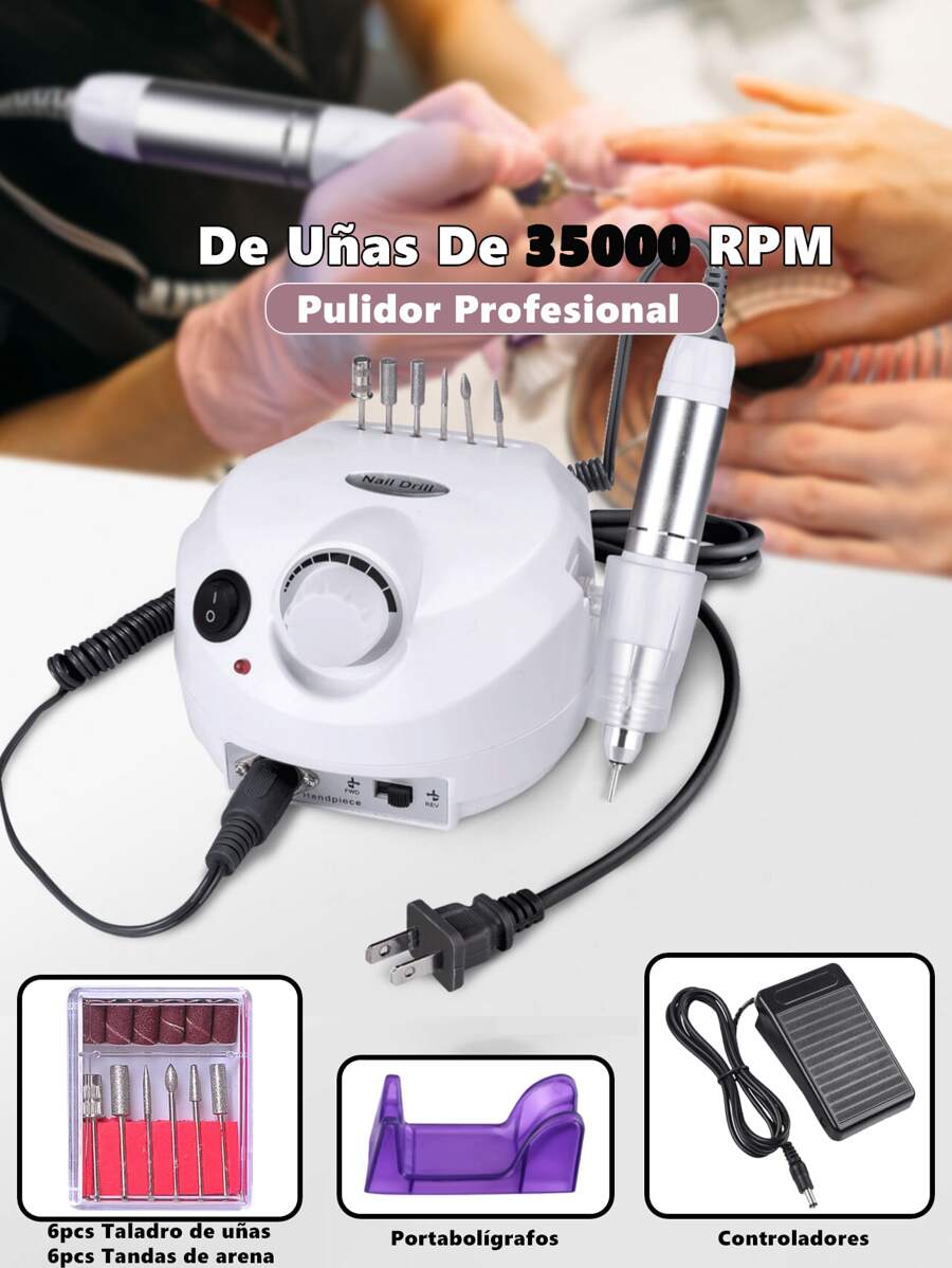 Pulidor Esmeril De Uñas De 35000 Rpm Pulidor Profesional - Taladro eléctrico de uñas, herramientas para pulir uñas, kit de manicura de 110 V/220 V, juego de pedicura y lima de uñas acrílicas Removedor de Uñas, Pedicura, Pedicure, Amortiguador de 6 Pies, Salón de Belleza, Hogar, Principiante,Aparatos para Cuidado Personal Material para el arte de las uñas Rosa, Blanco