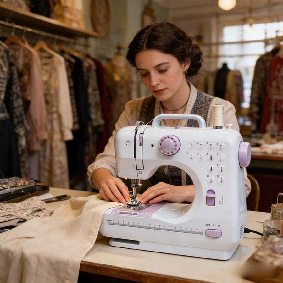 Máquina de coser grande, mini máquina de coser eléctrica portátil para principiantes, 12 puntadas incorporadas, 2 velocidades con pedal, luz, cajón de almacenamiento.