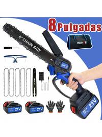 Sierra eléctrica inalámbrica mini de 6 pulgadas (660W)- Sierra de mano con batería recargable, protección contra salpicaduras para cortar madera, podar árboles, jardinería, campamento Motosierra Inalámbrica de Mano 6 Pulgadas, con 3 Cadenas y 1 Batería de Litio Recargable de 21V, 1 Par de guantes, 1 Gafas de protección,1 Cargador, Motosierra Eléctrica Portátil para Jardinería, Cortar Ramas de Arboles, Madera,Mini Motosierra Inalámbrica Portatil 6Inch 21v,Motosierra eléctrica recargable motosierra eléctrica multifunción portátil