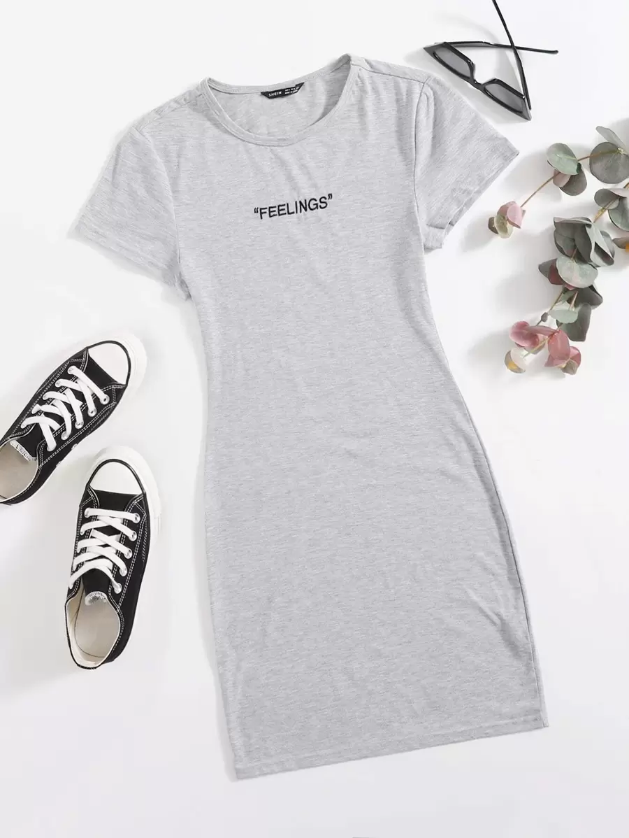 SHEIN EZwear Vestido ajustado con letra con bordado