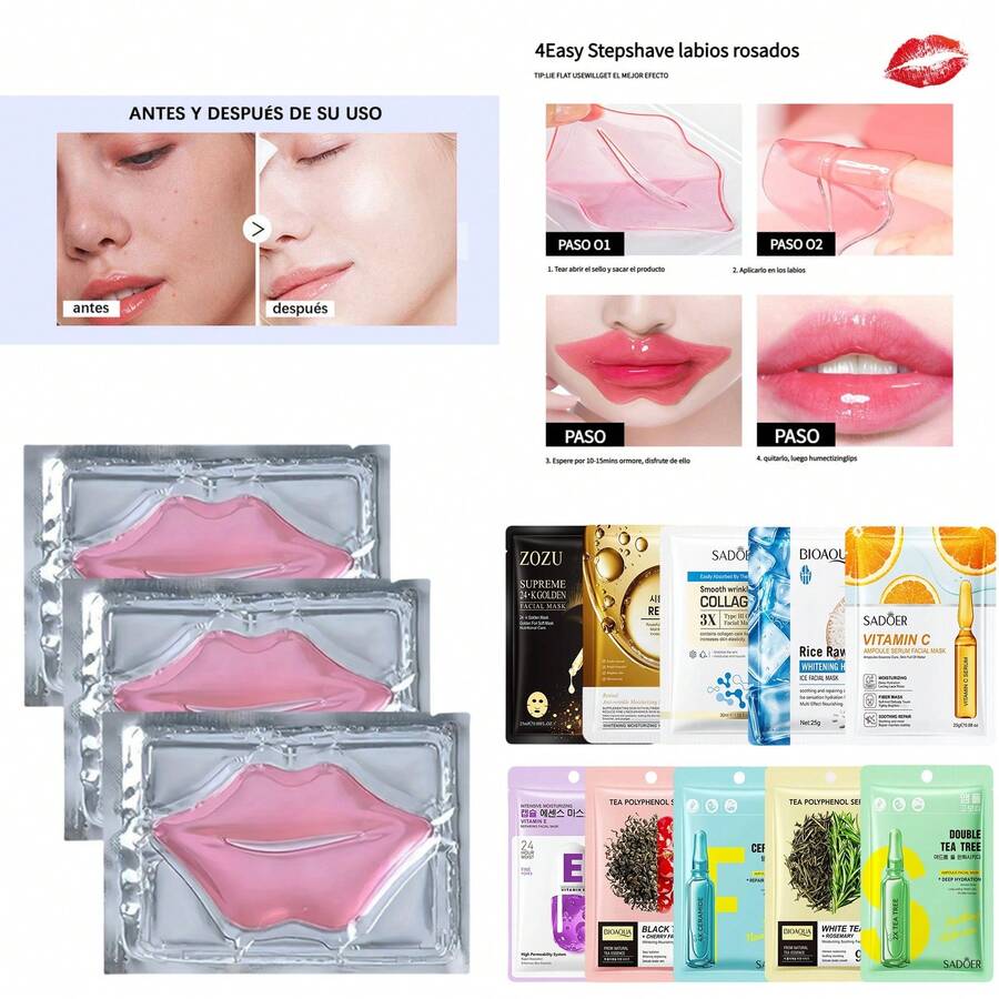 **100 unidades de Mascarillas Faciales Hidratantes de Colágeno + 100 unidades de Mascarillas Labiales** * Enriquecidas con colágeno, ácido hialurónico y nicotinamida. * Fórmula sin alcohol ni fragancia, apta para todo tipo de piel. * Hidratan, mejoran la elasticidad y son ideales para el cuidado nocturno. * Diseño elegante, textura sedosa y suave al tacto. * Reponen la hidratación facial y son fáciles de usar. * Ingredientes suaves para la piel. * ¡Estas mascarillas faciales para mujer y mascarillas labiales hidratantes te permitirán disfrutar de una piel suave y unos labios hidratados al mismo tiempo!