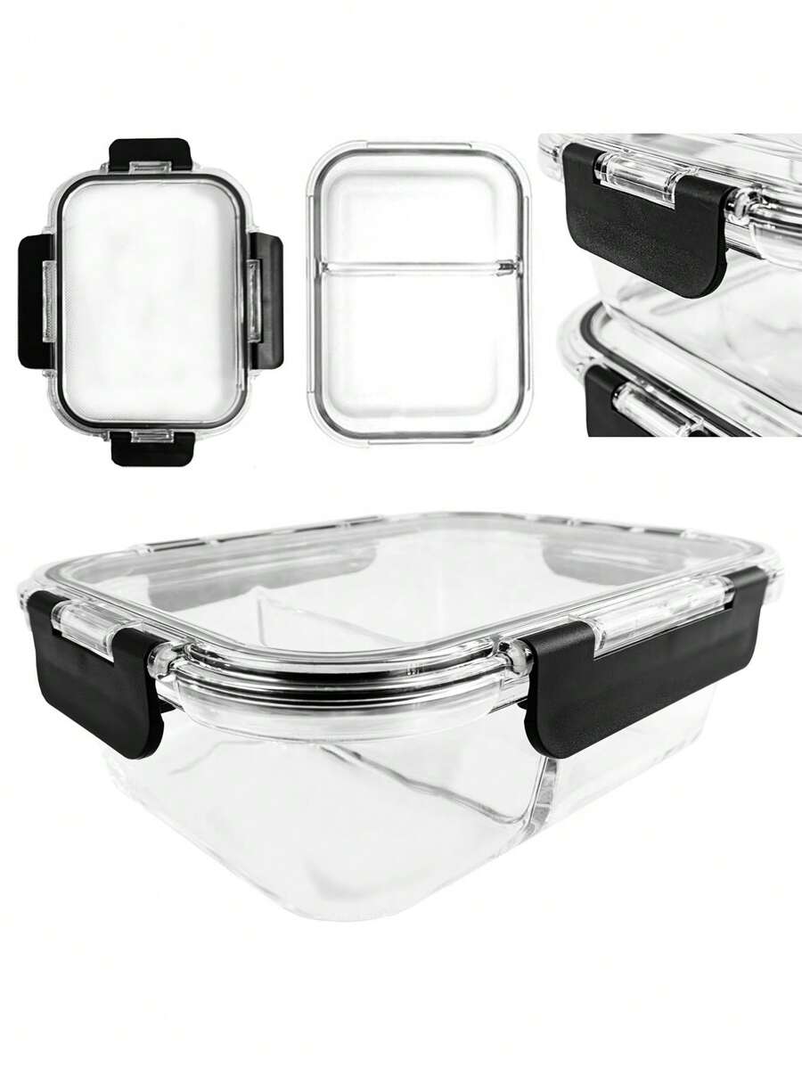 Set Brandtrendy 5 contenedores de vidrio herméticos con tapa de liga negra y divisiones para organización de los alimentos