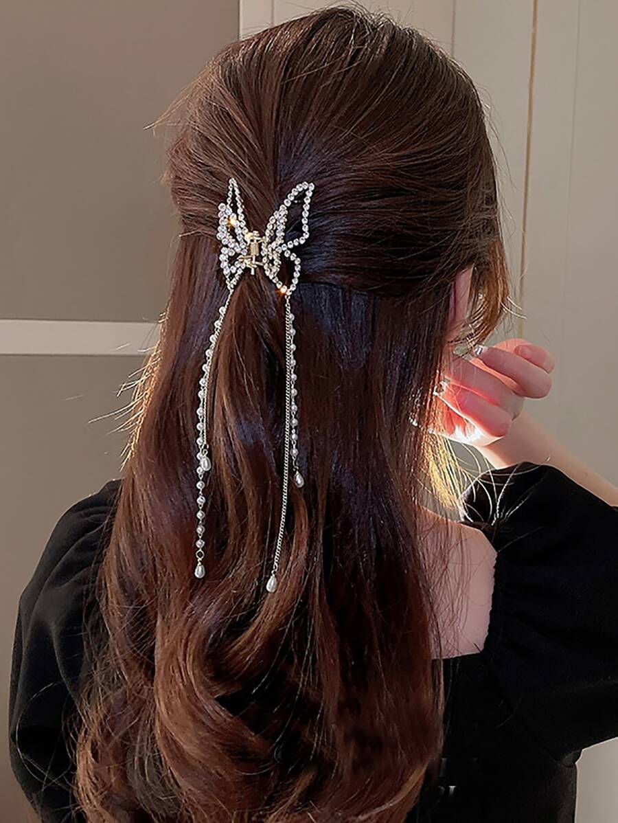Pinza de pelo con decoración de mariposa de strass y flecos, pinza de pelo elegante, pinza de pelo, pinza de pelo, pinza de pelo, pinza de pelo, pinza de pelo, accesorios de pelo con perlas para vacaciones, ropa de mujer