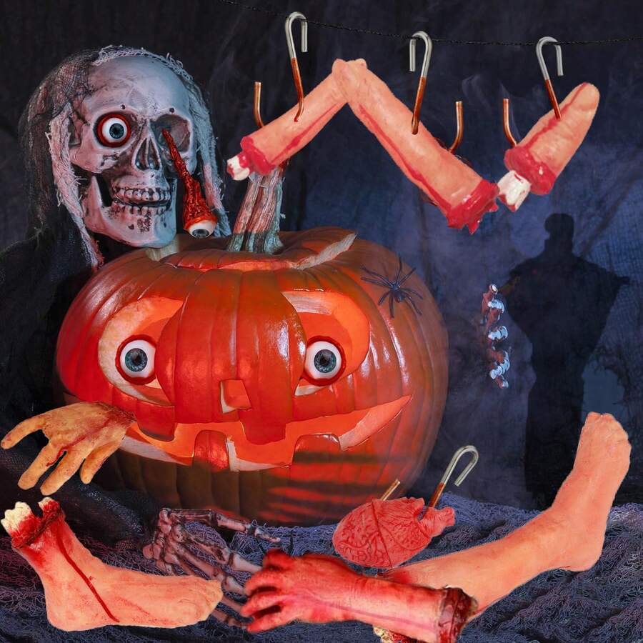Decoración de Halloween Horrible Miembros rotos falsos de sangre Dedos Piernas Brazo Pies Corazón Partes del Body falsas a tamaño natural Accesorios para fiestas de Halloween