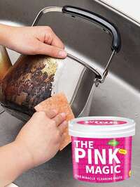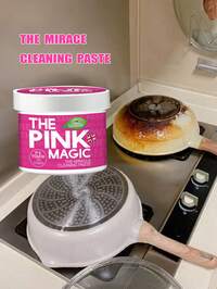 1pz Pasta de limpieza de acero inoxidable, crema limpiadora mágica para manchas de aceite rosa, limpiador para estufas, cocinas de gas, campanas, ollas y sartenes, herramientas mágicas para eliminar el óxido de la cocina, crema desincrustante, suministros de limpieza de cocina, herramientas de limpieza, adecuado para baños y cocinas 500g