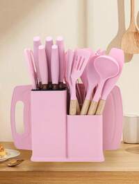 19 piezas Juego de Utensilios de Cocina y Cuchillos de Silicona en Negro, Verde, Rosa y Gris con Mangos de Madera - Herramientas y Accesorios de Cocina Resistentes al Calor, Incluye Cucharas, Espátulas, Cucharones, Batidores, Perfecto para Regalos del Día de San Valentín, Acción de Gracias y Fiestas Navideñas, Incluye un Cubo de Almacenamiento para Suministros de Cocina, Comedor y Repostería (El tamaño de los utensilios de cocina del set de cocina puede ser un poco más pequeño que el de los utensilios de cocina ordinarios)#2 Más vendidos