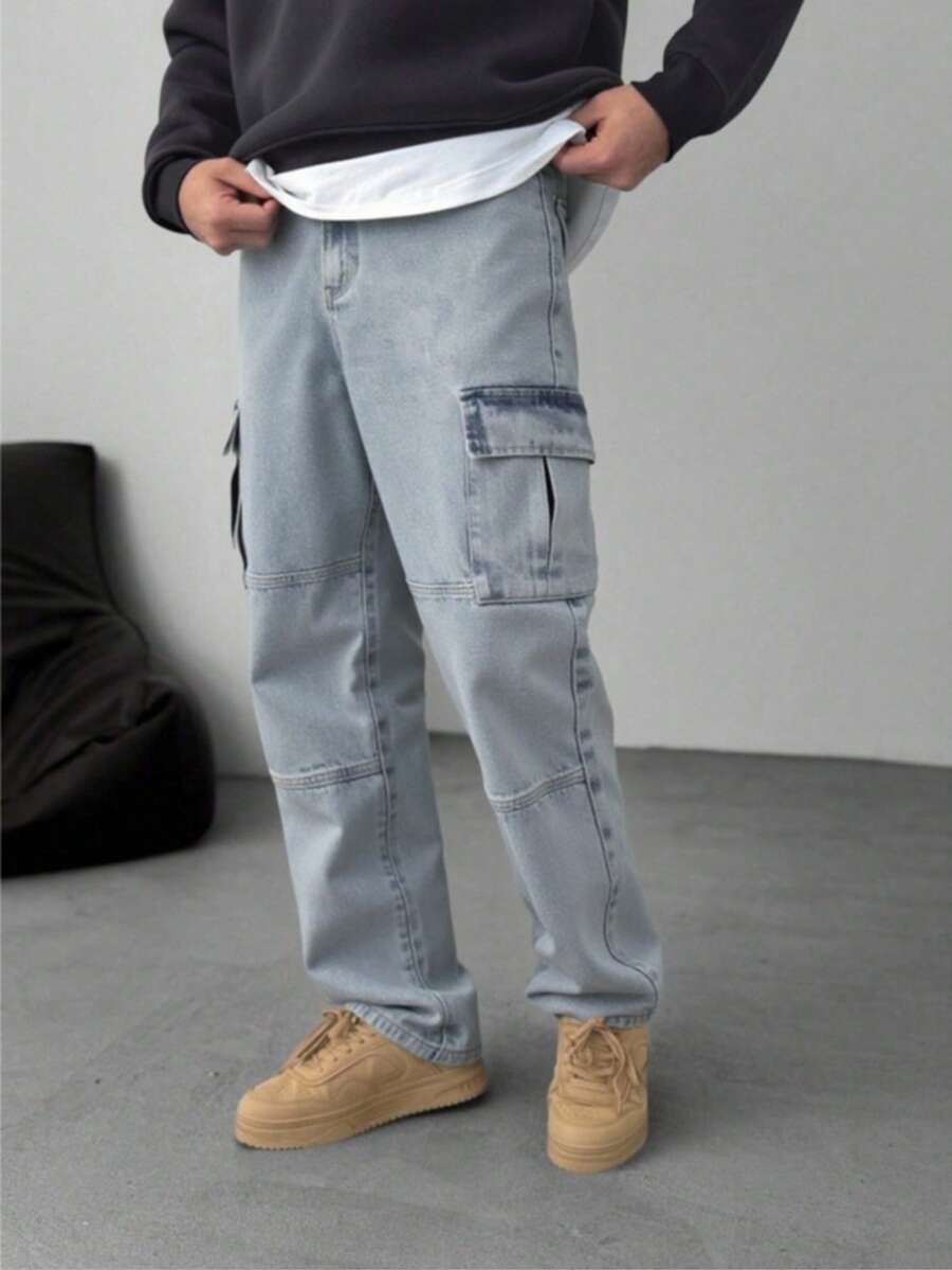 Logeqi® Jeans Vaqueros Azules Lavados De Moda Para Hombre
