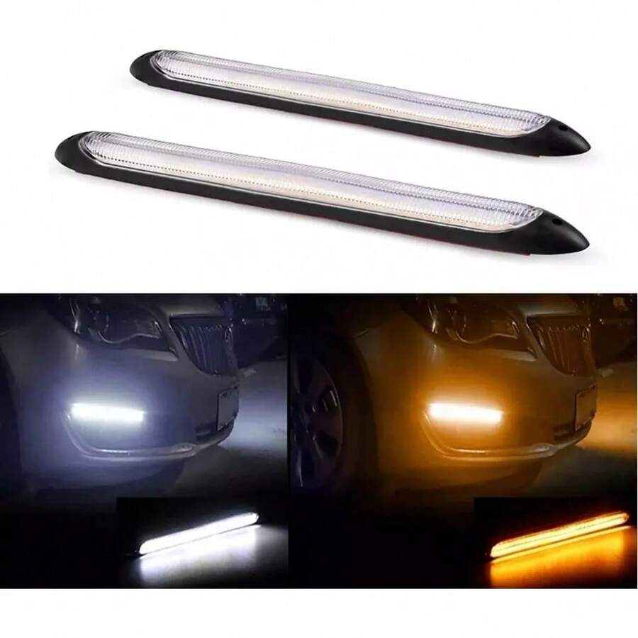 1 par de tiras de luz LED de 23 cm para iluminación LED secuencial en el chasis del automóvil, alternando colores amarillo y blanco.