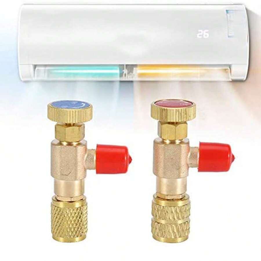 • Válvula de Seguridad Líquida, 2 Piezas R410A R22 Aire Acondicionado Refrigerante 1/4"Adaptador de Seguridad Válvula de Carga de Refrigerante,Válvulas De Seguridad Para Cargar Refrigerante R410a Y R22 - Dorado - Ver 10