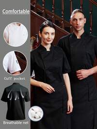Chaqueta de chef de manga corta transpirable, diseño de manga de malla, cómoda, para chef, cocina, cocina, panadería, hotel, restaurante, catering, uniforme de manga corta de verano #6 Más vendidos