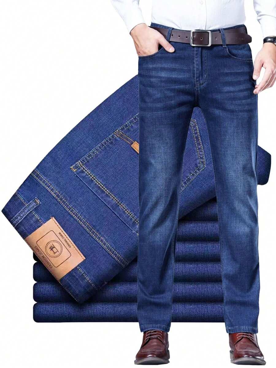 Jeans de diseño clásico sueltos para hombres, Jeans Básicos de Trabajo, Jeans para Hombre,Men's Classic Regular Jean, Jean de Corte Holgado, Pantalón de Mezclilla, Diseño Clásico Y Chic Para Negocios