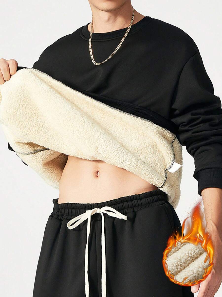 Sudadera gruesa y cálida de invierno para hombre, sudadera de cuello redondo de color liso
