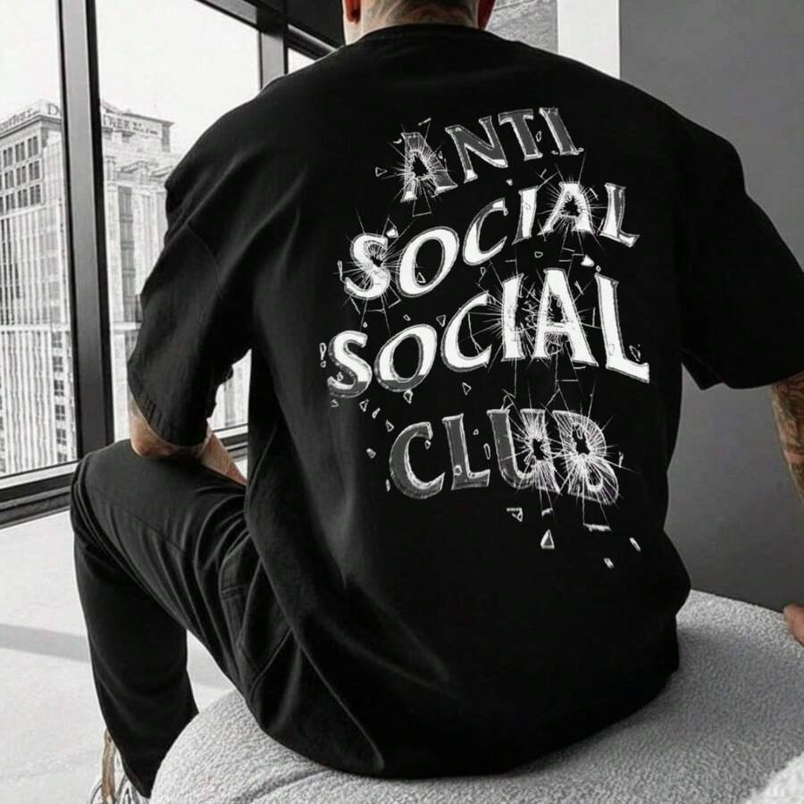 • Playera de algodon"Antisocial" | Premium DTF Print - Negro - Ver 2