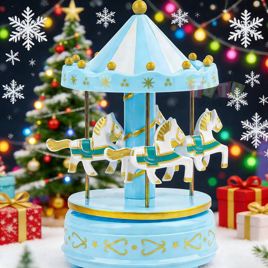 Caja De MúSica CláSica Accionada A Mano, Regalo De CumpleañOs Creativo Y RomáNtico Para Parejas, Elegante DecoracióN De Escritorio, Caja De MúSica De Carrusel Giratorio A Cuerda, Ornamento Musical Con TemáTica De Caballos Blanco-Rosa-Rojo-Azul, Caja De MúSica Decorativa Para DecoracióN De PasteleríA Y Ocasiones De Regalo, Caja De MúSica Giratoria