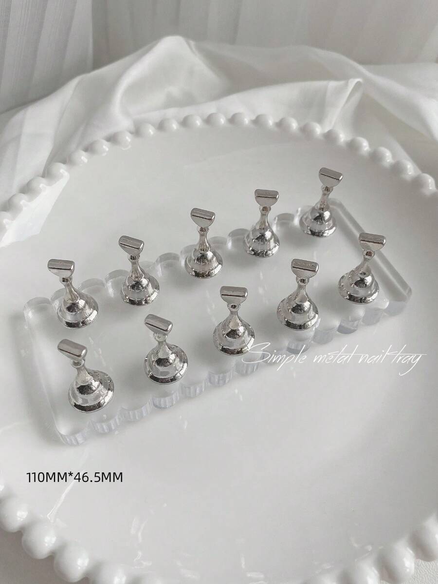 Decoraciones de arte de uñas - Conjunto de 1 base de onda sólida de resina acrílica autoadhesiva con imán + 10 soportes de color blanco K para práctica de manicura con estilo vintage/japonés/coreano, floral y láser, para hacer en casa/al aire libre/novia/hermana/esposa/Día de la Madre/boda/salón de belleza/Día de San Valentín