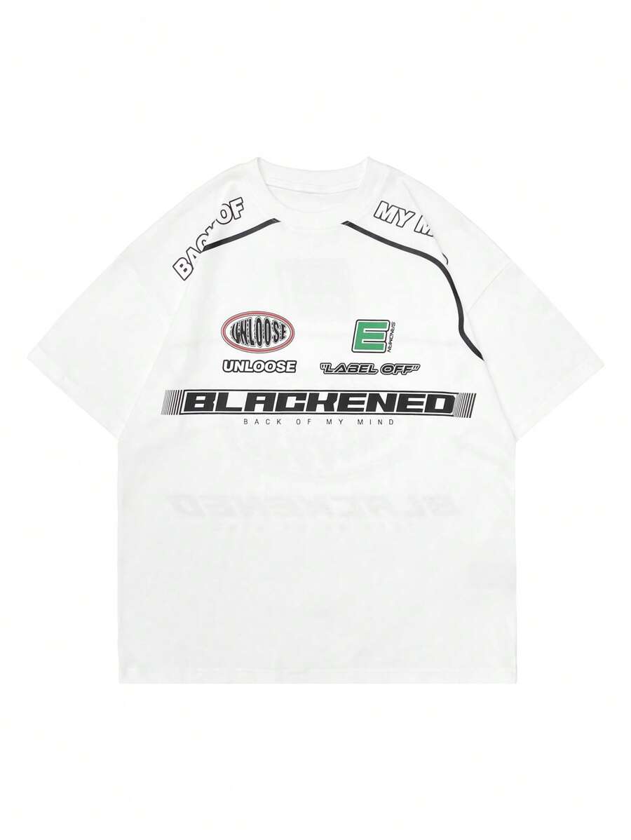 OVDY Hombres Camiseta con estampado de slogan