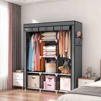 Armario ropero portátil de tela tipo closet, almacenamiento y organización, guardarropa plegable con funda antipolvo y cierre enrollable, tubo para colgar ropa, estantes para zapatos/cajas, organizador multiusos para recámara, entrada, sala, departamento, oficina o cuarto de lavado, fácil de armar y ahorra espacio#7 Más vendidos