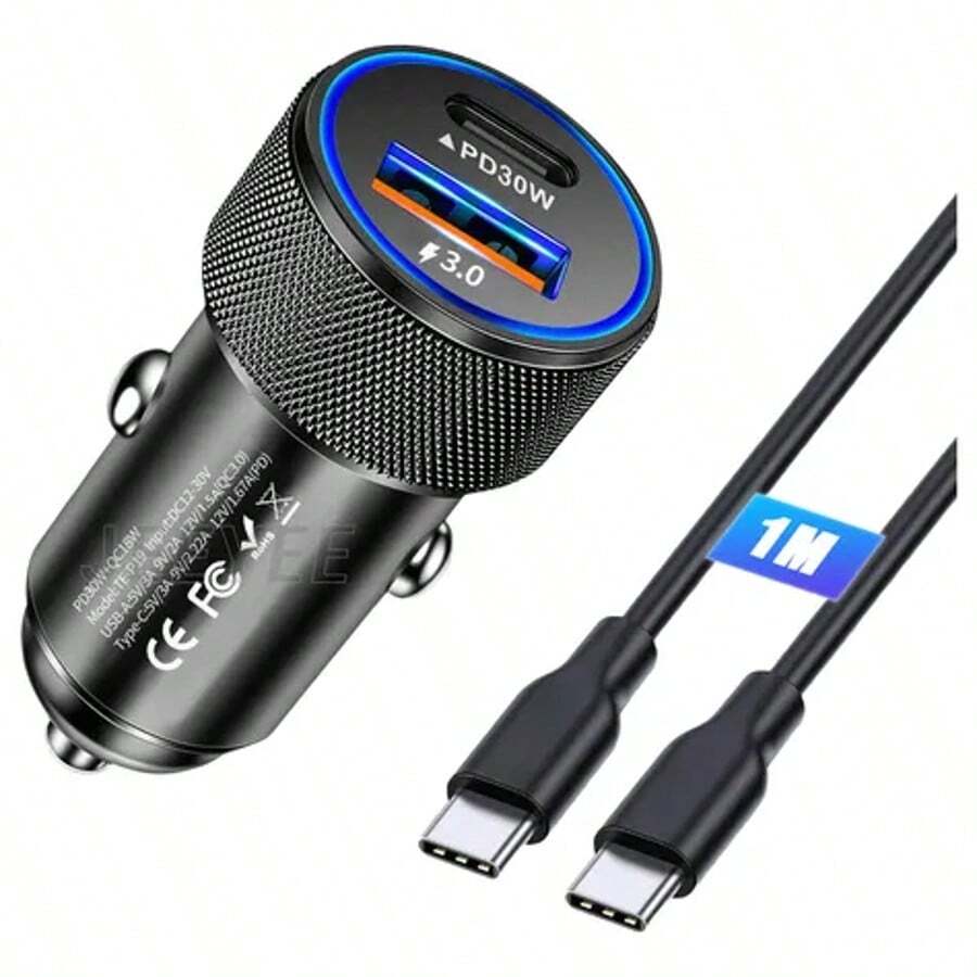 Cargador rápido para coche QC3.0 con cable de carga de 1 m PD30W